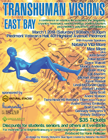“14 speakers from different Faiths – Islam, Raelism, Lutheran, Mormon, Catholic, Seventh Day Adventist, Buddhist, Wicca, Urantia, Terasem, Atheism, Agnosticism – will discuss the similarities and contradictions of Religion and Transhumanism. 3 panels + plenty of time to get your questions answered.”